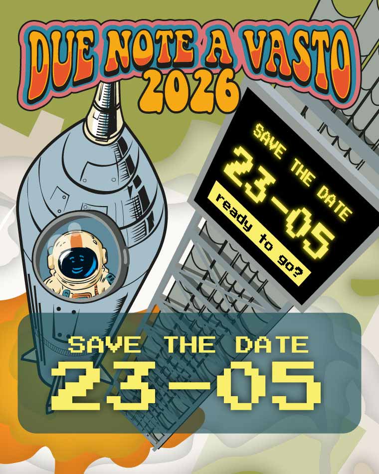 due note a vasto 23 maggio 2026 Giorni Ore Minuti Secondi DUE NOTE A VASTO “Edizione 2026″ Due Note a Vasto 2026: non mancare, vivilo con noi! A breve Leggi Tutto » Marzo 20, 2023 Nessun commento